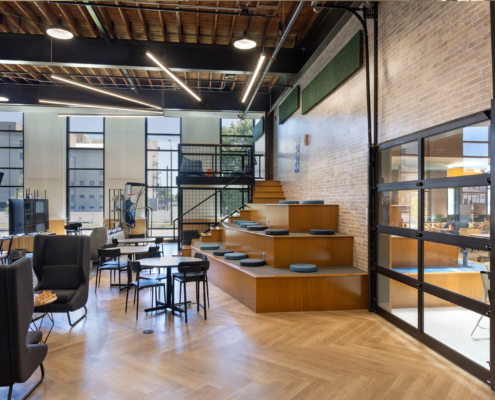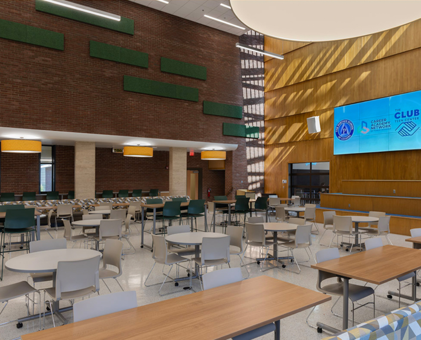 The finished design was consciously respectful of the former synagogue’s legacy and notable architecture, while contributing expansion elements adding a new yet complementary 21st Century vibe befitting the building’s dynamic repurposing. The facility also houses a well-used Boys & Girls Clubs Teen Center, with a combined capacity for serving 300 youths.