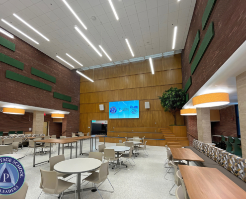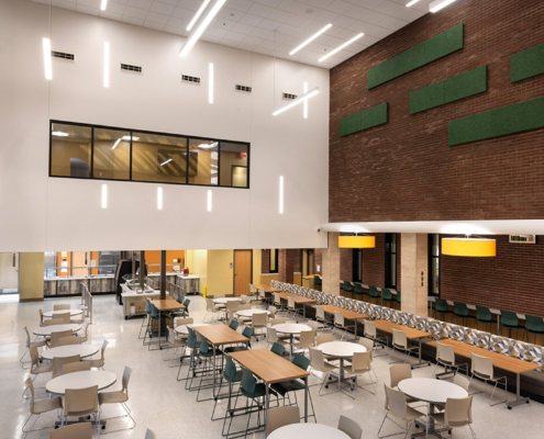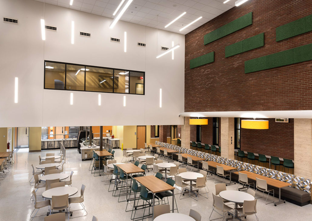This pace required a workforce of up to 125 craft workers on site at any given time, often working 10-hour days, weekends, and holidays to achieve January dedication of the new 7-12 school with its “Future Lab” focused on collaboration, career exploration, and workforce skills development.